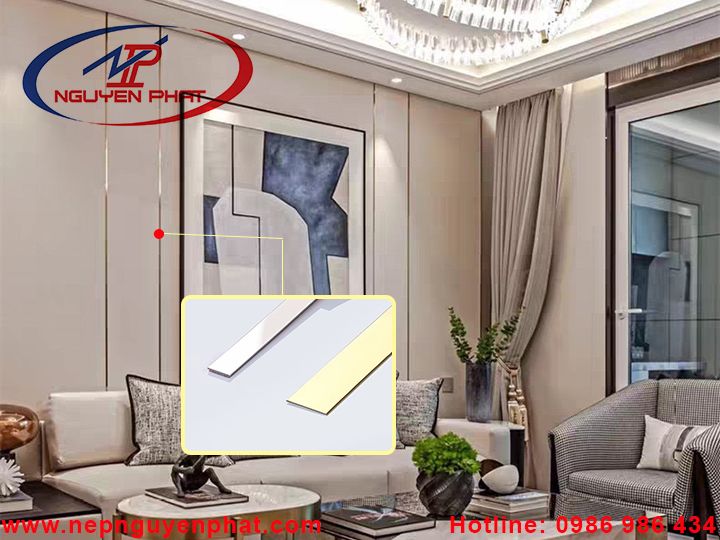 Lập là inox có dán decal mặt sau giúp thợ thi công dễ dàng, nhanh chóng. Ứng dụng chủ yếu của nẹp lập là inox là để dán trang trí trên bề mặt các vật liệu nội thất như vách đá, vách kính, vách gỗ,... Sản phẩm do Tổng kho nẹp Nguyên Phát phân phối có màu vàng sáng bóng, tính thẩm mỹ, độ bền cao và giá thành rẻ.